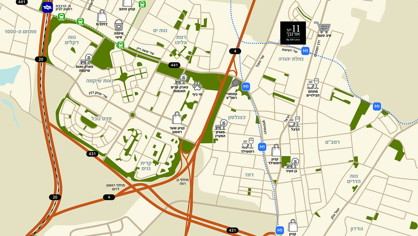 בנוסף, במרחק הליכה קצר נבנה בימים אלו מרכז קניות חדש בכיכר העצמאות. כל זאת לצד נגישות מיטבית, תחנת המטרו M1 נמצאת במרחק של כ–150 מטר מהפרויקט, קווי אוטובוס זמינים ונגישות מהירה לאיזורים רבים. כל אלו מייצרים איכות חיים
